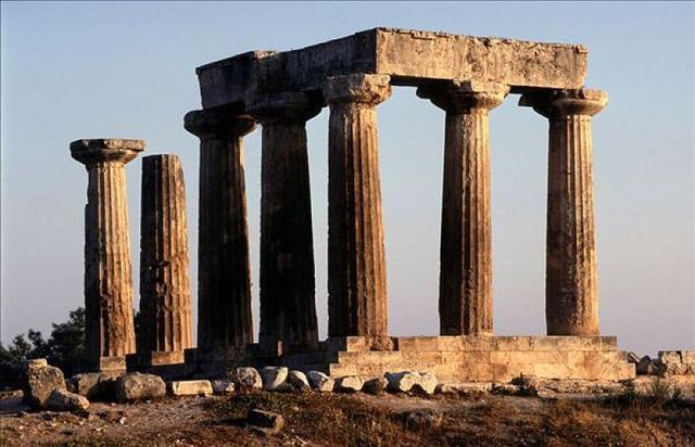 古科林斯城坐落于一座石质小山上,小山即位于伯罗奔尼撒半岛,而在古城的北面则有一条狭长的沙质地段。就是在这里,公元前550年,古希腊人建造了一座神庙献给太阳神阿波罗。