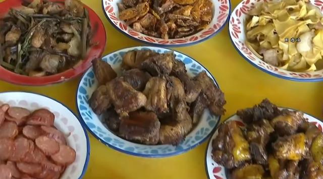 因为大爷早就准备好了丰盛的饭菜,早就知道有个好看的大妹子要来,大爷怒炒十个菜来欢迎,这一桌大眼一看都是硬菜。