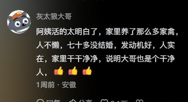网友的评价很到位:“阿姨活的很明白,大爷家里养那么多家禽证明人不懒,家里干干净净说明还是一个干净人”。
