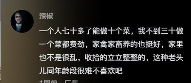 “七十多了还能做十个菜,家禽家畜都养的很好,这种老头同年龄段的很难不喜欢吧”