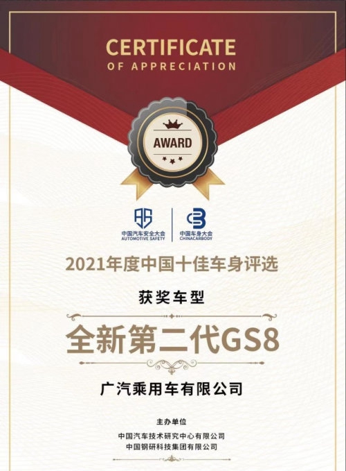 当然,除了诚意满满的优惠政策之外,在产品实力上,传祺GS8也丝毫不将就。就拿一款车最为重要的安全性来说,传祺GS8采用全新GPMA架构的车身结构,车身重量更轻、强度更高、结构设计更新颖,实现了最优的吸能和传力要求,确保了各种碰撞工况中乘员舱的结构稳定可靠。“口说无凭,大奖为证”,在最权威的2023年首批中国保险汽车安全指数的测试结果中,传祺GS8在车内乘员安全指数、车外行人安全指数和车辆辅助安全指数安全性项目上全为G级(优秀)(G:优秀;A:良好;M一般;P:较差),而“2021中国十佳车身”大奖就是对其被动安全的最佳证明。