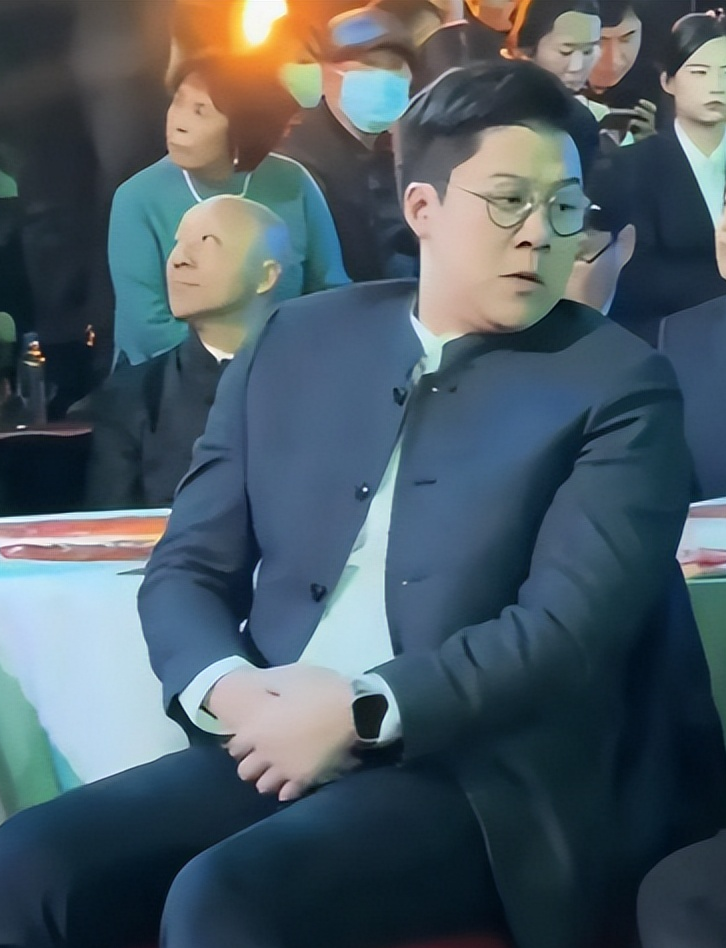 作为中国文学艺术界联合会委员的他穿着一身板正的新中式西服坐在台下认真观看。
