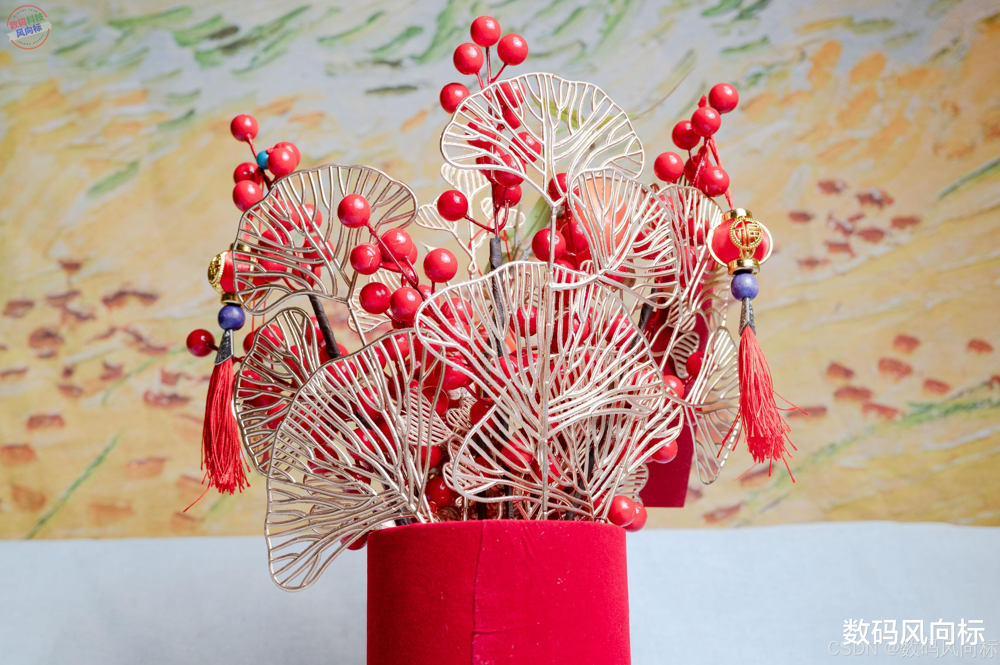 在年宵花上,各种花和水果都有着丰富的寓意,很多新颖的水果也能够和传统文化相结合,像是巴西冬青果就代表八方来财,此外,一些年宵花还会搭配各种吉祥的配饰,如福字、中国结等,还有大吉大利之类的吉祥话。这些配饰不仅增添了年宵花的美感,也进一步强化了其吉祥的寓意。