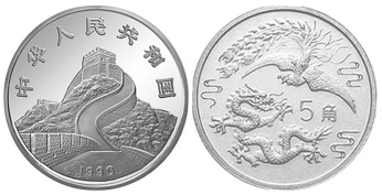 1990版龙凤金银纪念币正面图案均为长城,并刊国名和发行年号;背面图案均为龙凤吉祥图,并刊有面额,其中有5枚纪念币刊有成色和对应的重量。该套纪念币设计精美,具有一定的文化艺术价值,在中国传统的吉祥图案中,龙凤是典型的一种。龙凤文化不但深植于中华民族的血脉,而且历史悠久。