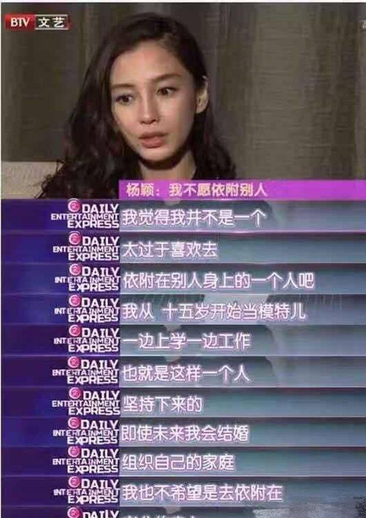 杨颖以前在接受采访时说过,她不喜欢依附别人。
