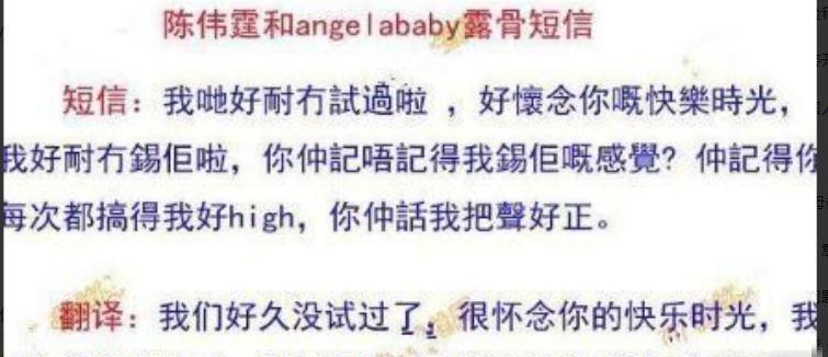 那段时间,网上还流出了杨颖发给陈伟霆的露骨短信。