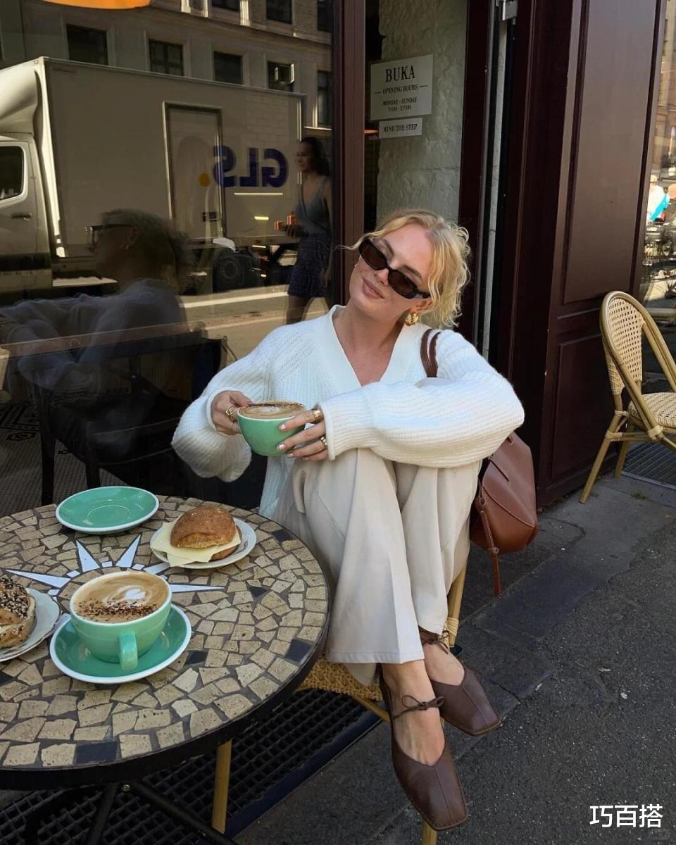 而且最关键的是只有针织毛衣和纯白色系同时在线时,整体美感才是高级洋气、有辨识度且能展示女性独有的温柔和内敛的,但凡白色系和其他材质搭配或者针织材质和其他色系搭配,都是美中不足的。