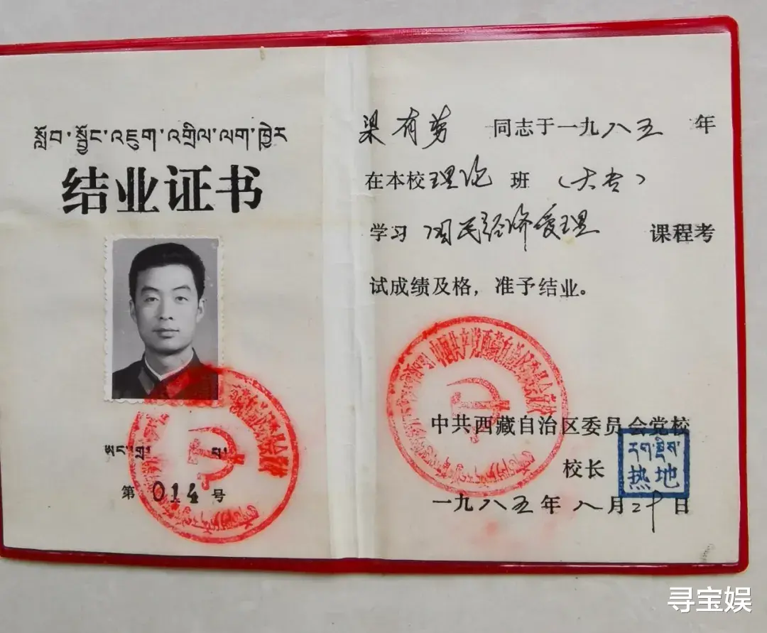 从1984年春开始,到1985年底,我在繁忙的工作中读完了自修大学十二门课程,共参加了四次考试,试卷由西藏大学评判,很有权威性。最终我以总评89.4分的成绩取得了毕业证书,还被评为优秀学员,获得了自治区政府200元的奖金鼓励。当时负责大学组织管理工作的自治区团委书记王亚蔺在总结大会上,为我颁发了毕业证书和奖金。