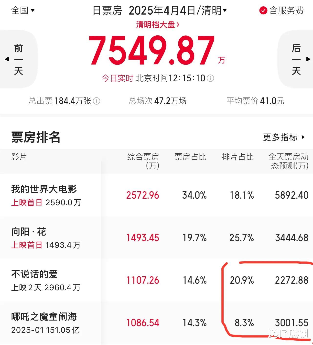 然而,与粉丝的欢喜形成鲜明对比的是,虽然是日票房冠军,但首日票房仅收1400万,其中大部分还是预售票房!这个清明节也只有6200万票房,上而映第一天后,各电影数据平台也纷纷调低对该票票房的预期,目前预期总票房只1.2亿,远低于上映前的3亿的预期。