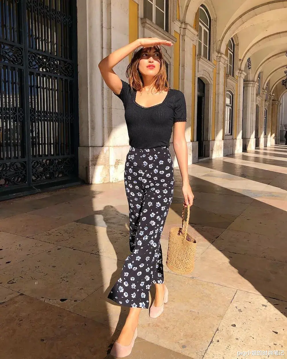 曳地阔腿裤与粗跟奶奶鞋相结合,不仅在视觉上营造出高挑的错觉,更让你的每一步都显得个性满满,风姿绰约。