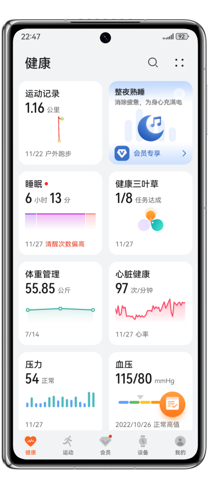 以我个人为例,在使用华为智能穿戴后,我对于睡眠和饮食的关注比以往更多了,也更能简单轻松地了解身体健康状况,成功实现对个人健康的主动管理与预防,真切感受到华为智能穿戴设备为用户健康守护提供了强大的科技后盾。