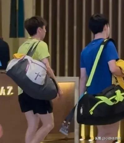 王曼昱上训,队医帮忙拿箱子陈熠和徐奕两位小妹妹去太原参加比赛,曼昱和体能教练、队医一起上场。亚洲杯期间都是两位小队员陪伴曼昱一起上下训,不知道太原挑战赛结束后,她们会不会来澳门陪练。