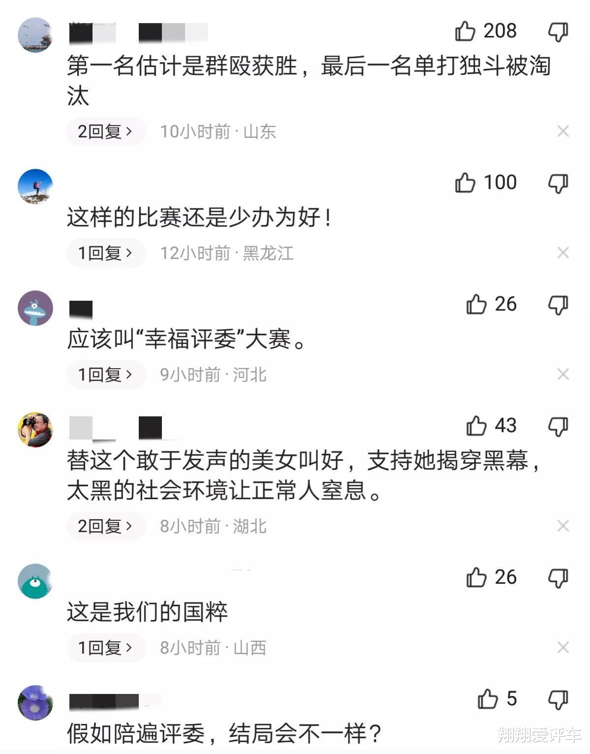 网友爆料,这位美女选手已经被评委内定,冠军。短短几句话,信息量太大,关键词,昨晚。
