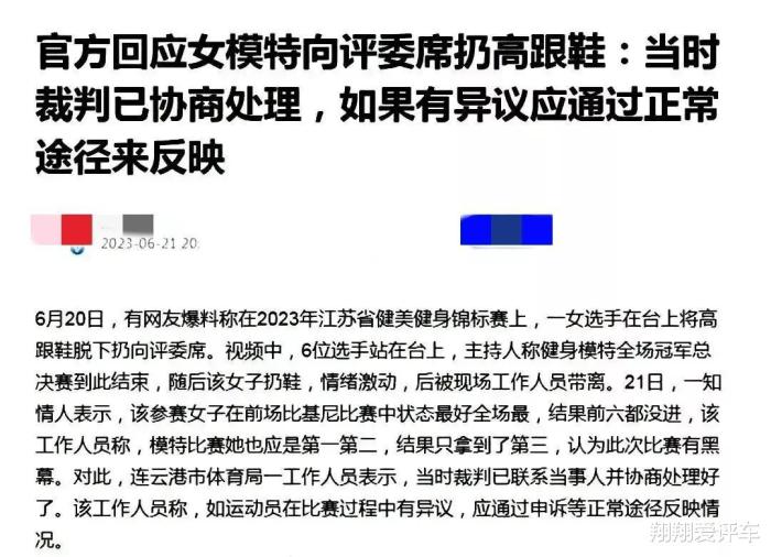 模特健美比赛,一名美女选手,在比赛结束后,脱下鞋子,123直接砸向评委,两只鞋子咋像同一个人?