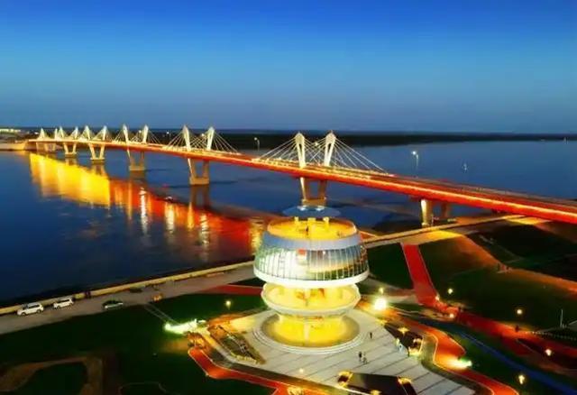 这座桥修建数年,看似应很长,实则全长19.9公里,中国境内6.15公里,俄罗斯境内13.4公里。