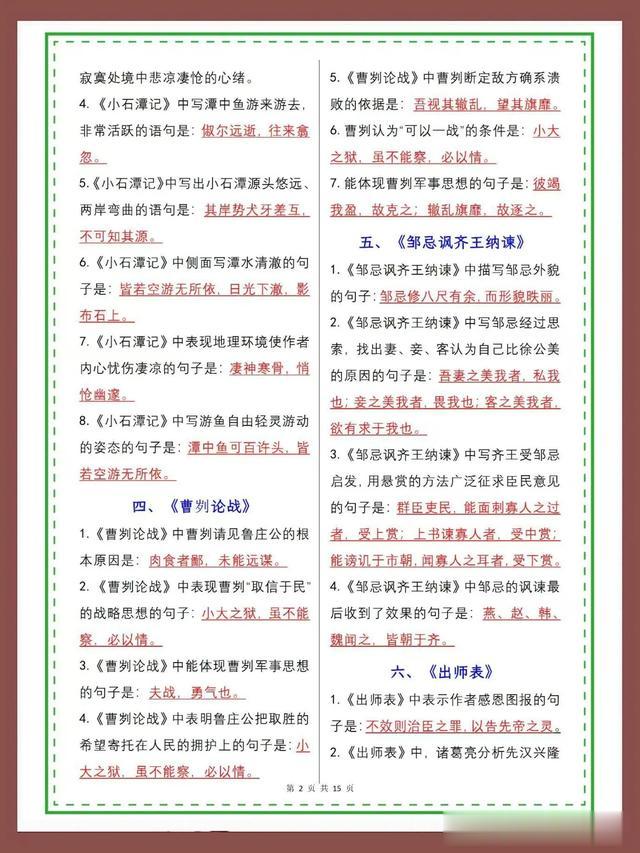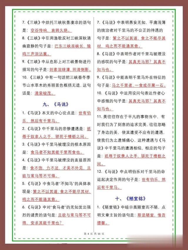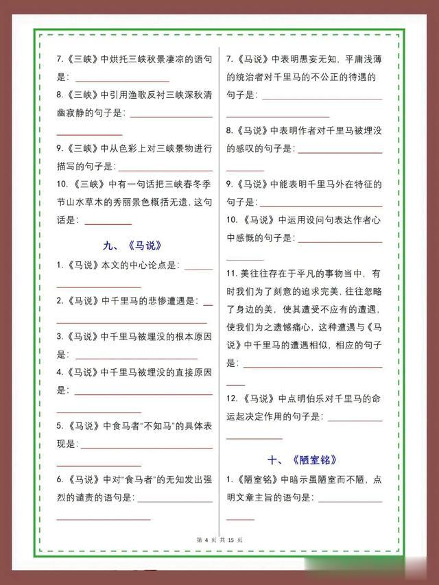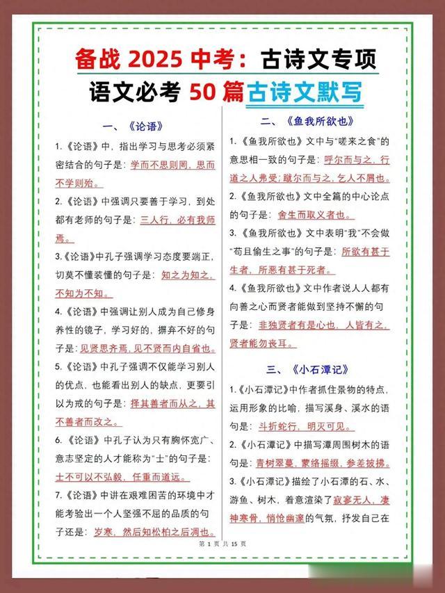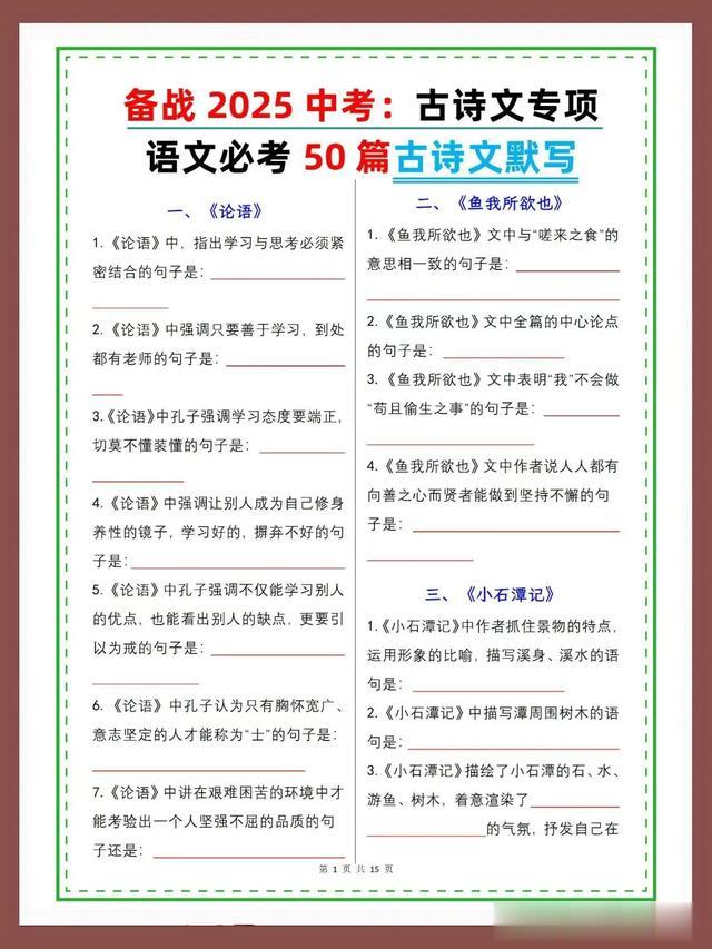2025中考语文古诗文专项复习默写