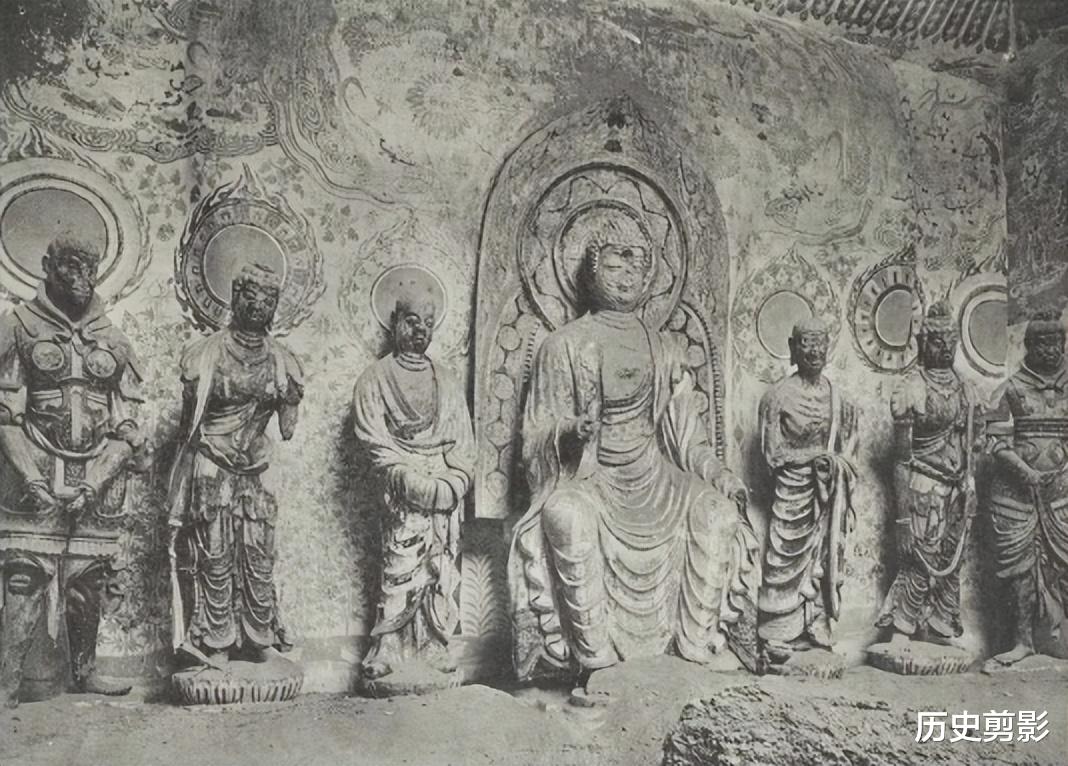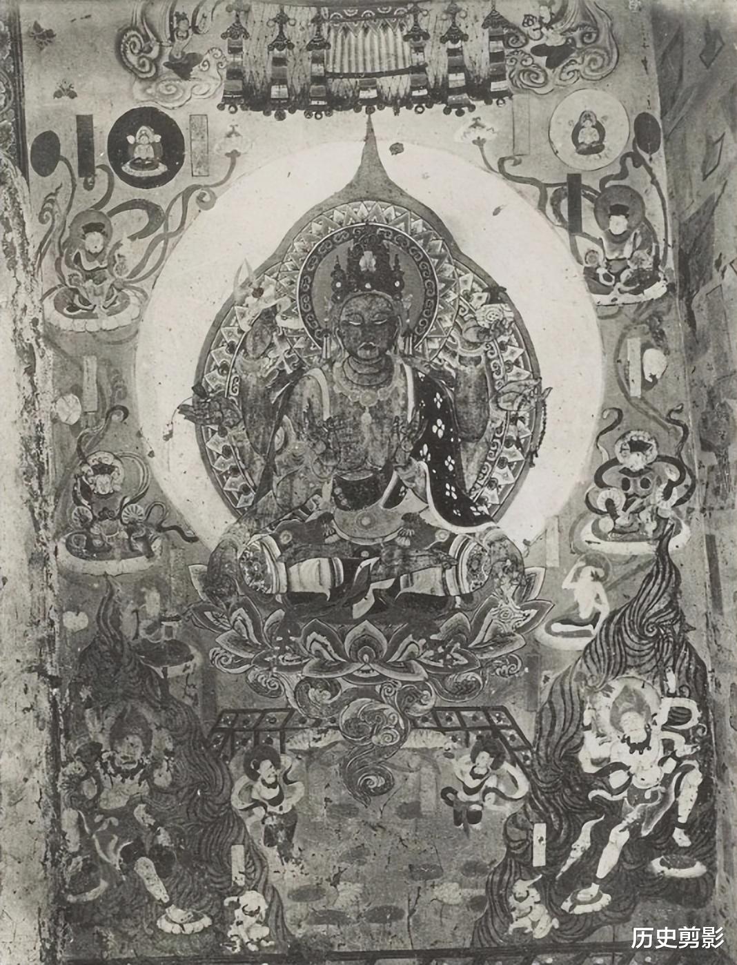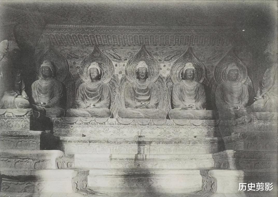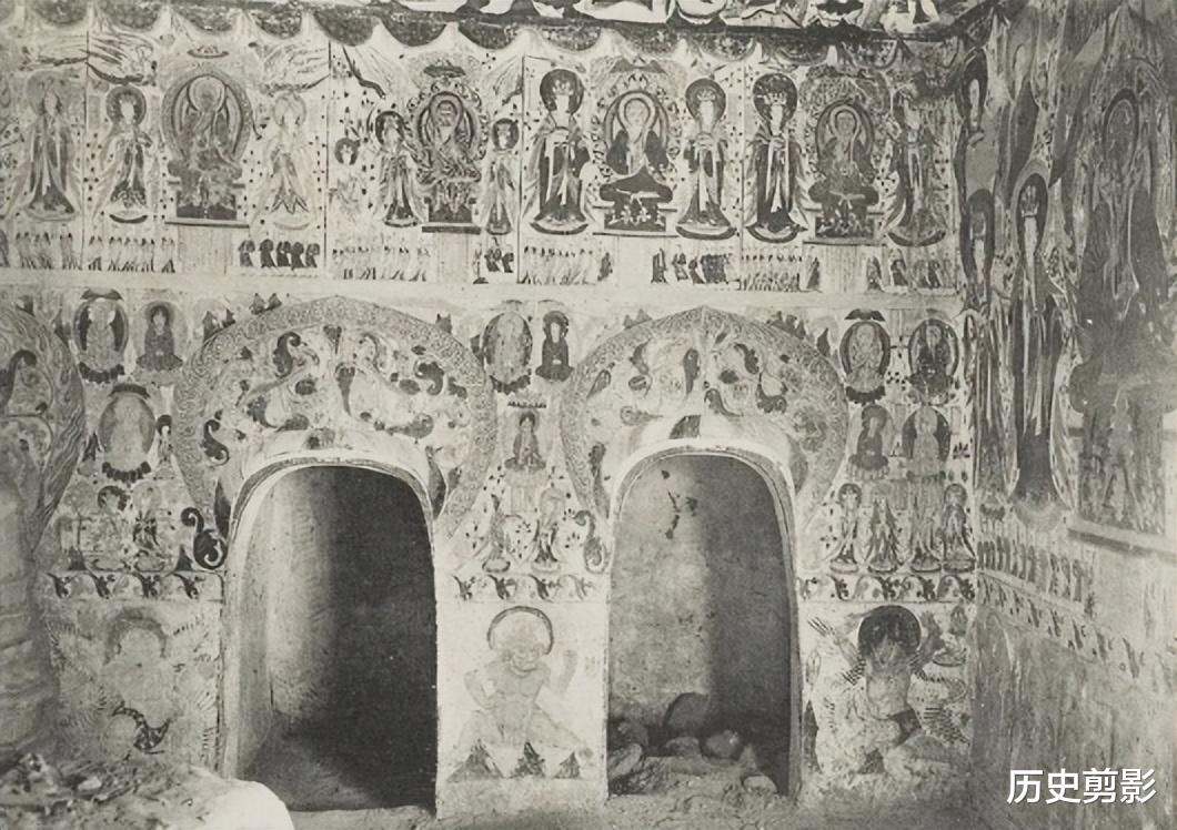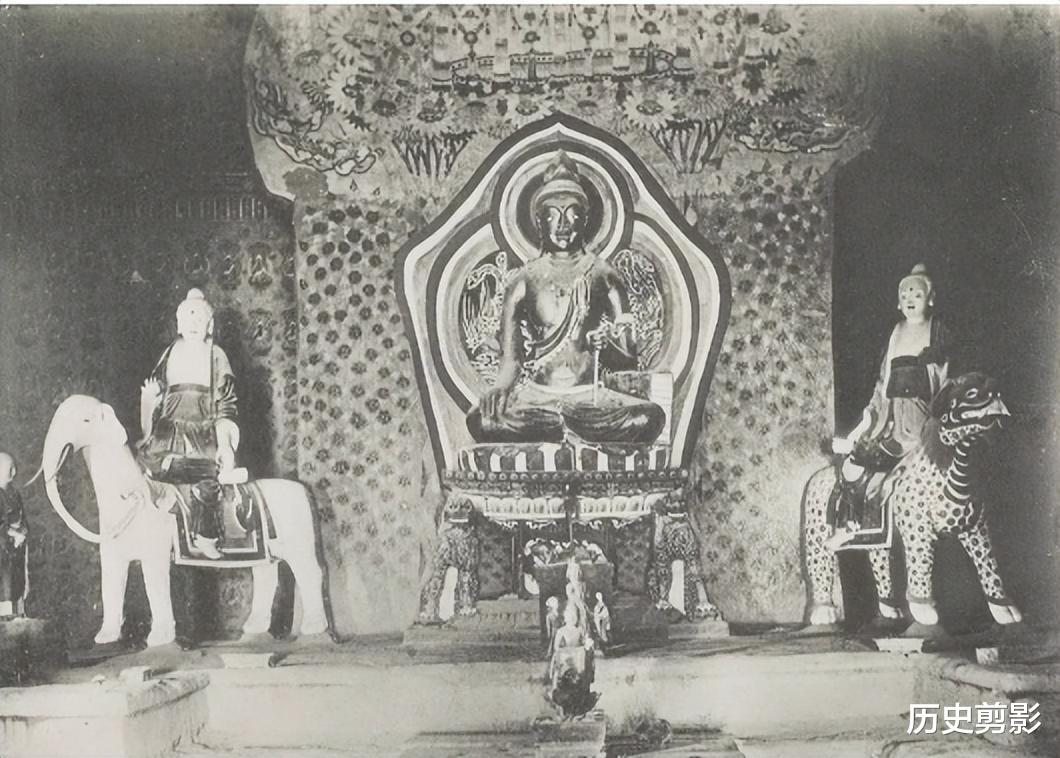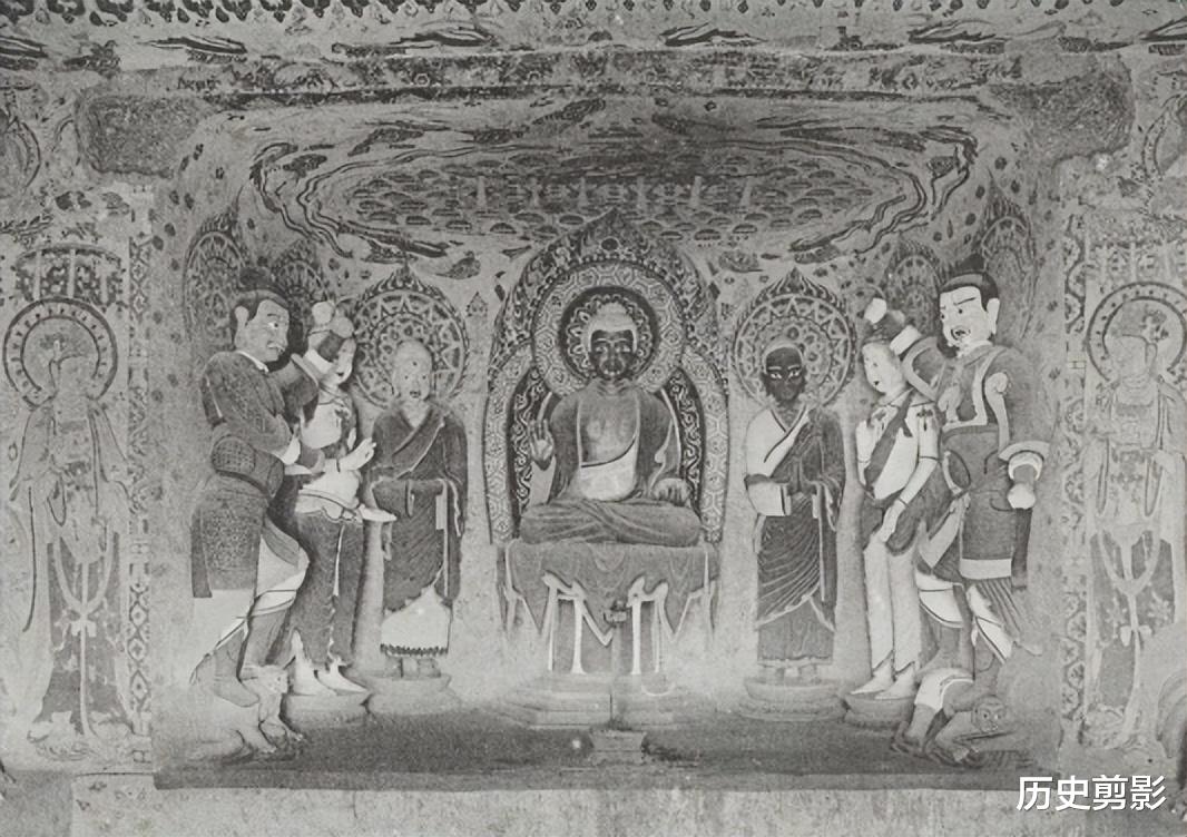 这组图片来自《Les Grottes de Touen-houang》(敦煌石窟),由法国汉学家伯希和(Paul Pelliot)编著。全书共六卷,收录1908年伯希和考察团从新疆进入敦煌所拍摄:莫高窟外景、洞窟(约一百八十二窟)彩塑、壁画等照片。就敦煌石窟而言,最早进行全面详细的考察,当属1908年法国人伯希和带领的考察团的工作。1908年2月25日伯希和考察团从新疆进入敦煌,他们来到莫高窟以后,进行洞窟的编号、测绘、摄影和文字记录工作。从伯希和考察团拍摄到今天已有百年的时间,在这百年当中,由于自然、历史以及人为的关系,洞窟已经发生了这样那样的变化。有的甚至发生了根本性的变化,在当时完好的彩塑壁画,到了今天早已不存,但却在伯希和图录中意外得到保留,弥足珍贵。