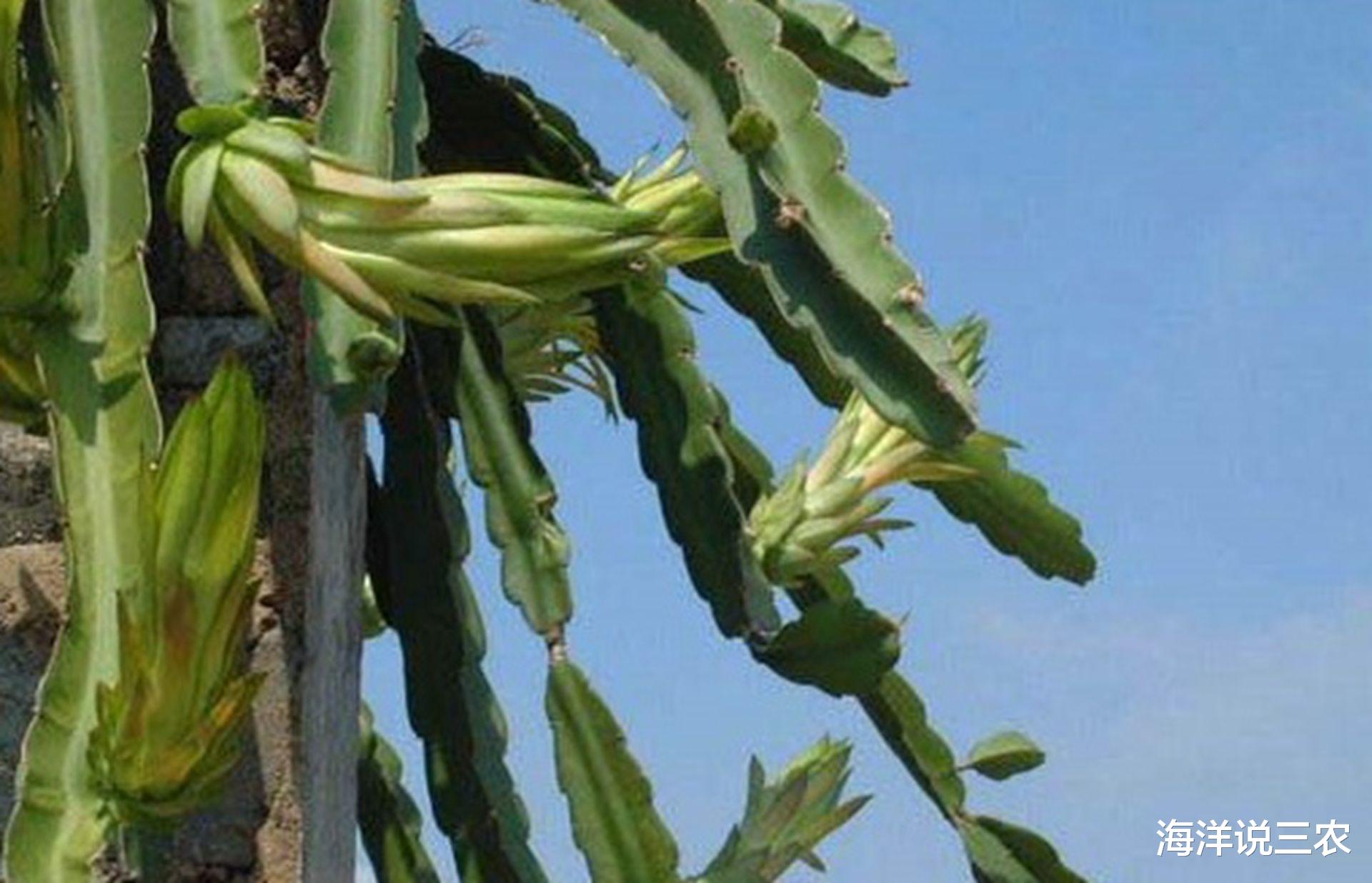 还有一种绿植是火龙果,它和量天尺有一定联系,因为火龙果是从量天尺上开的花结出来的果。火龙果的茎也是肉质的,和量天尺有点相似,但火龙果主要是结果,而量天尺更多的是观赏它那奇特的外形。