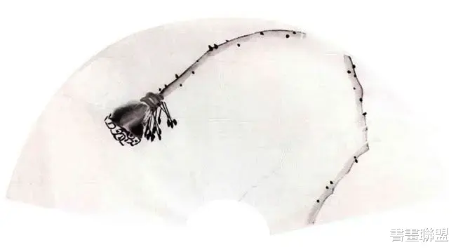 第一步:画莲蓬叶柄一枝,取势,重墨点点。