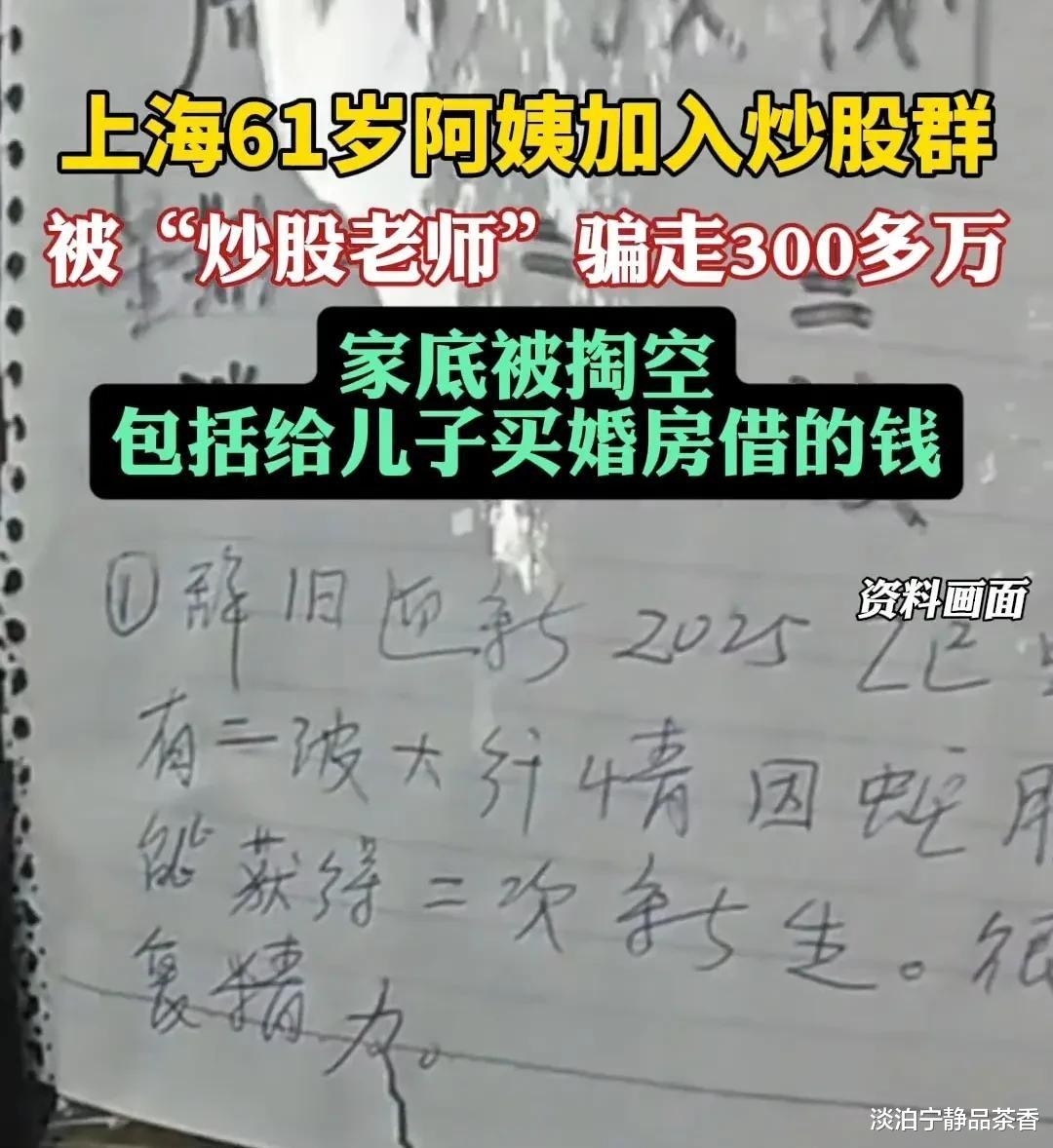 上海61岁的朱阿姨,最近经历了一场噩梦。她辛苦攒下的300万积蓄,说没就没了,全被骗子卷走了。这笔钱,是她一辈子的心血,本该用来安享晚年,却因为一场骗局,化为乌有。 更令人揪心的是,这笔钱还包括了儿子婚房的首付……这背后,究竟隐藏着怎样的真相?