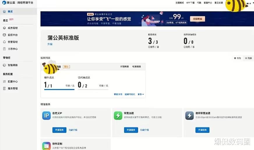 对了,蒲公英路由器有个绝招,就是异地组网。我们可以把处于多个地点的设备连接在同一个虚拟局域网内,像在一个局域网里一样连接。设置也很简单,先建个网,再把需要的硬件成员和软件成员添加即可。