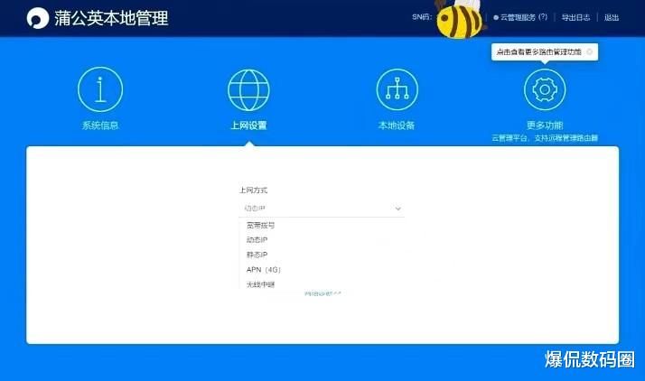 对了,蒲公英R300A的兼容性极高,如果大家希望将它作为传统的路由器来使用,同样可以轻松实现。只需简单地将猫或光纤的输出网线连接到其蓝色的WAN口上,就能享受稳定的网络连接。