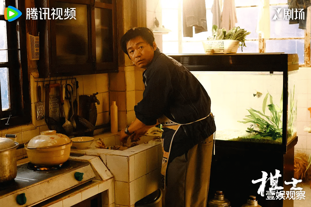 先看《棋士》,对于光影和隐喻的应用堪称考究,被不少网友称为“棋士美学”,比如,竹林前有崔伟崔业讨论案情,后有夏生秦晓铭推搡打斗,一场戏依靠镜头纵深也能拉出戏剧张力;还有金鱼、乌龟等以物喻人的前后呼应、细节满满,常常用一个转场镜头就能串起两条故事线。