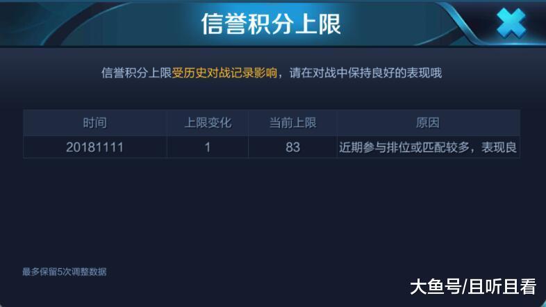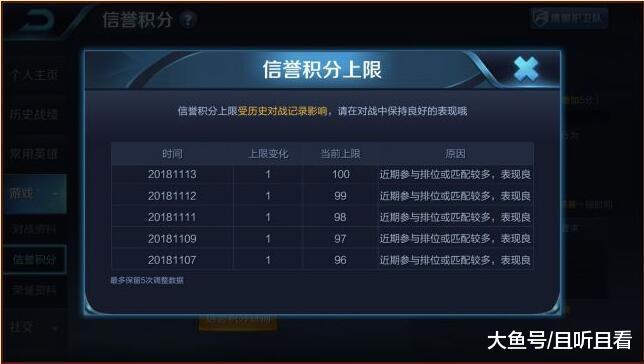 而当信誉分达到100分后,要提升上限反而很容易,差不多10局就能加1分,不过1天只能加1次分。