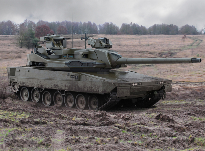 坦克底盘改进自豹2坦克,使用一台德国造MTU 883 EPP发动机,它可以输出1500马力,坦克具备较高的越野机动性,最大时速65千米/小时,最大行程460千米。坦克只配备了4名车组,驾驶员位于车体内右前方,在他的左侧是1名武器操作人员,除了常规的观瞄设备,坦克上还安装了23个摄像头,提供坦克周边全方位的图像。