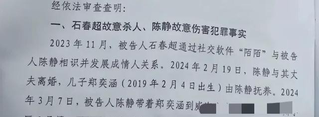 2023年,陈静在社交软件上面认识了石某。随后在非常短的时间里,陈静和石某就已经发展成了情人关系,双方经常在私下里进行往来。