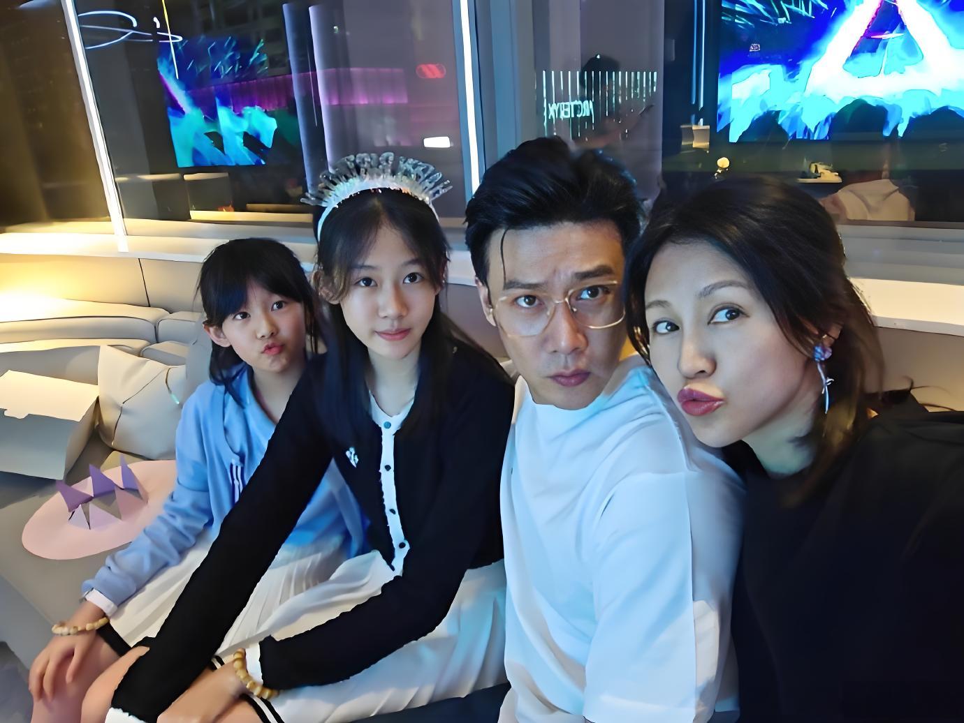 (陆毅夫妇与两个女儿近照)