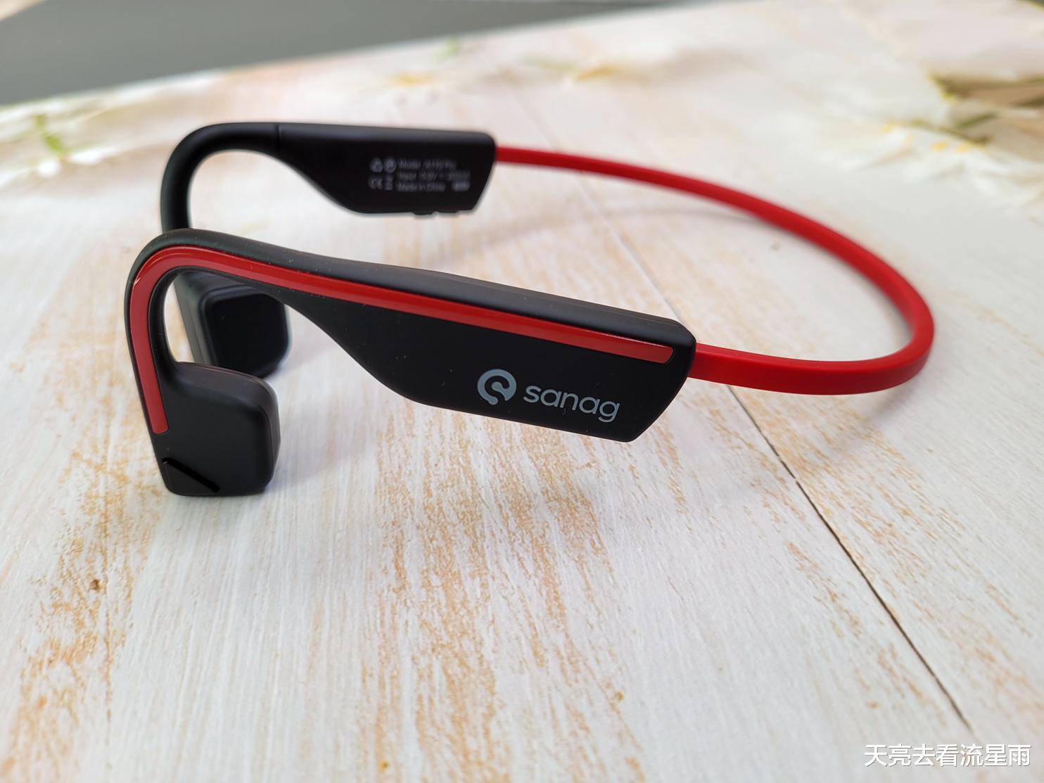 耳挂部分左侧印有sanag的logo,音量键及开关机键整合在右侧部分,充电接口采用TYPE-C,虽然很多人觉得这种接口防水性能上比不上磁吸接口,但是我觉得这种接口使用上还是要比磁吸的方便,出门可以跟手机公用一根线。