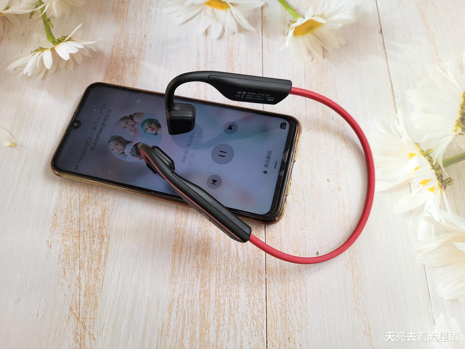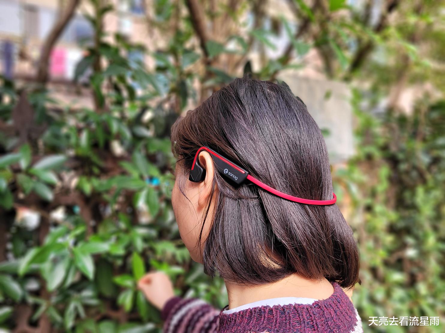 佩戴体验上,全家男女老少戴眼镜的不戴眼镜的长头发的短头发的,都佩戴体验了下,舒适度和稳固性是没有什么问题的。当然平时最主要还是我用了,使用场景一般是居家、骑行、散步,佩戴A11S Pro感觉甚好,久戴、开大音量也不会耳朵发麻发痛,佩戴久戴的体验感真是比传统的骨传导更舒适更给力。