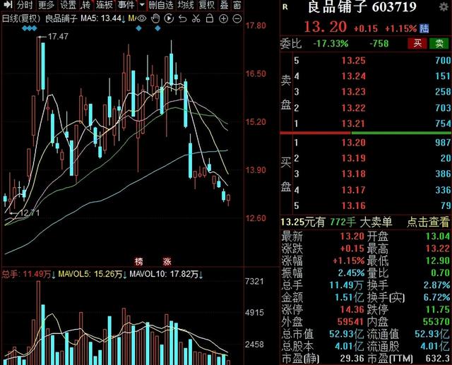 自达永有限披露减持计划以来,良品铺子股价受挫,连续多日录得下滑。截至2月17日收盘,公司股价为13.2元/股,收涨1.15%,总市值52.93亿元,TTM市盈率632.3,早已不复昔日百亿元的市值光景。