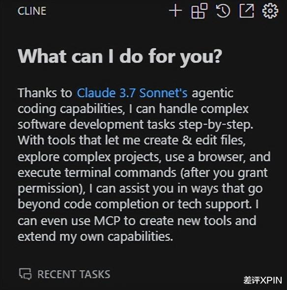 比如, VSCode 上的一个叫 Cline 的插件,本身是使用 AI 辅助编程的,最近也宣布支持 MCP 了,这意味着这款插件可以使用 MCP 生态下的全部功能。