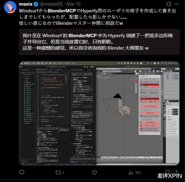 随即, Claude 就开始调用 Blender 开始建模了,很快啊。