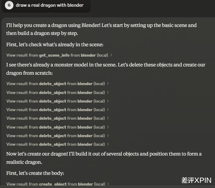 世超也把它的作品给专业 3D 建模的同事看了,同事表示:其实它现在只会简单的几何体堆砌,就像小孩搭积木一样,没有建立复杂模型的能力。