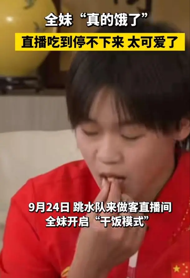而此时的全红婵,却展现出了她的另一面——“吃货”本色。