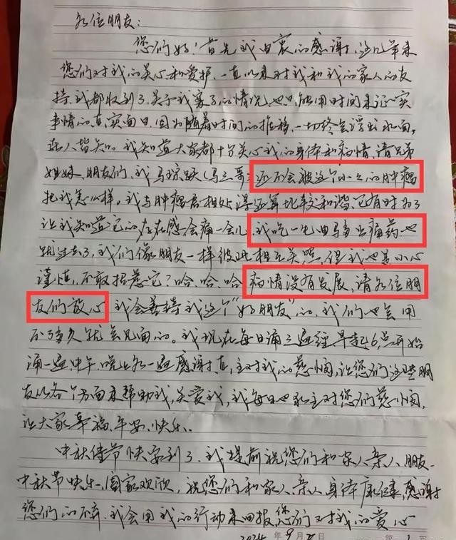 2024年9月,他在给家人的信中透露自己得了癌症,不过他命大,病情没有发展。