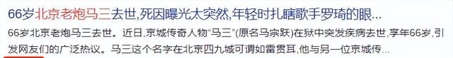 1月3日,被称为“北京四九城好大哥”的马三(马踪跃)去世,享年66岁。