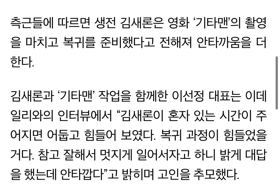 知情人士透露,金赛纶原本准备与好友开咖啡馆,并改名金雅任,重返娱乐圈,朋友都无法相信这个不幸的消息。