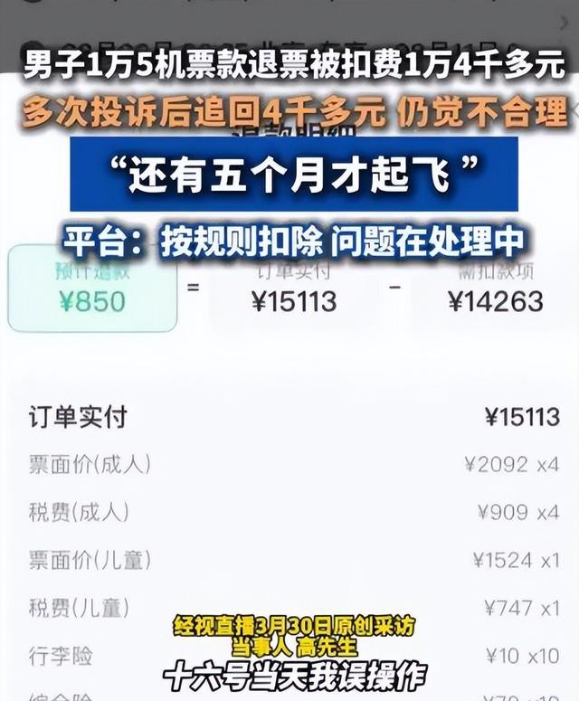 高先生越想越不对劲,明明自己还有5个月时间的机票,退票扣这么多钱,实在是太离谱了。