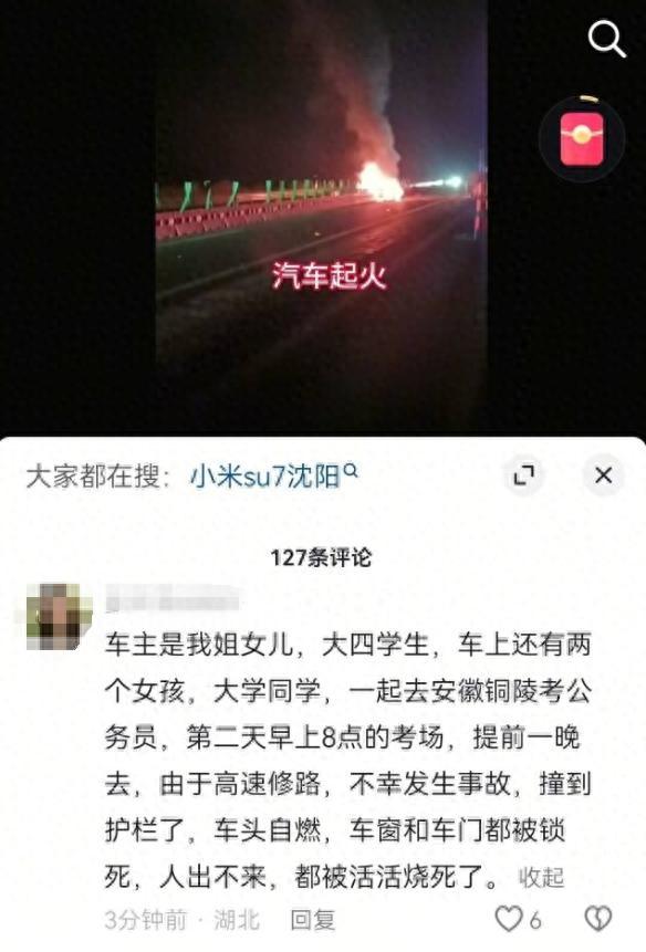 4月1日,一条“小米SU7高速碰撞后爆燃致3人死亡”的消息引爆全网。三天来,这场发生在德上高速池祁段的事故持续发酵,3名年仅20岁的女孩葬身火海的惨烈画面刺痛公众神经。随着小米官方通报、家属发声和专家解读的陆续披露,舆论焦点从单纯的事故本身,逐渐演变为对智能驾驶技术安全性、车企责任边界乃至生命尊严的深度拷问。