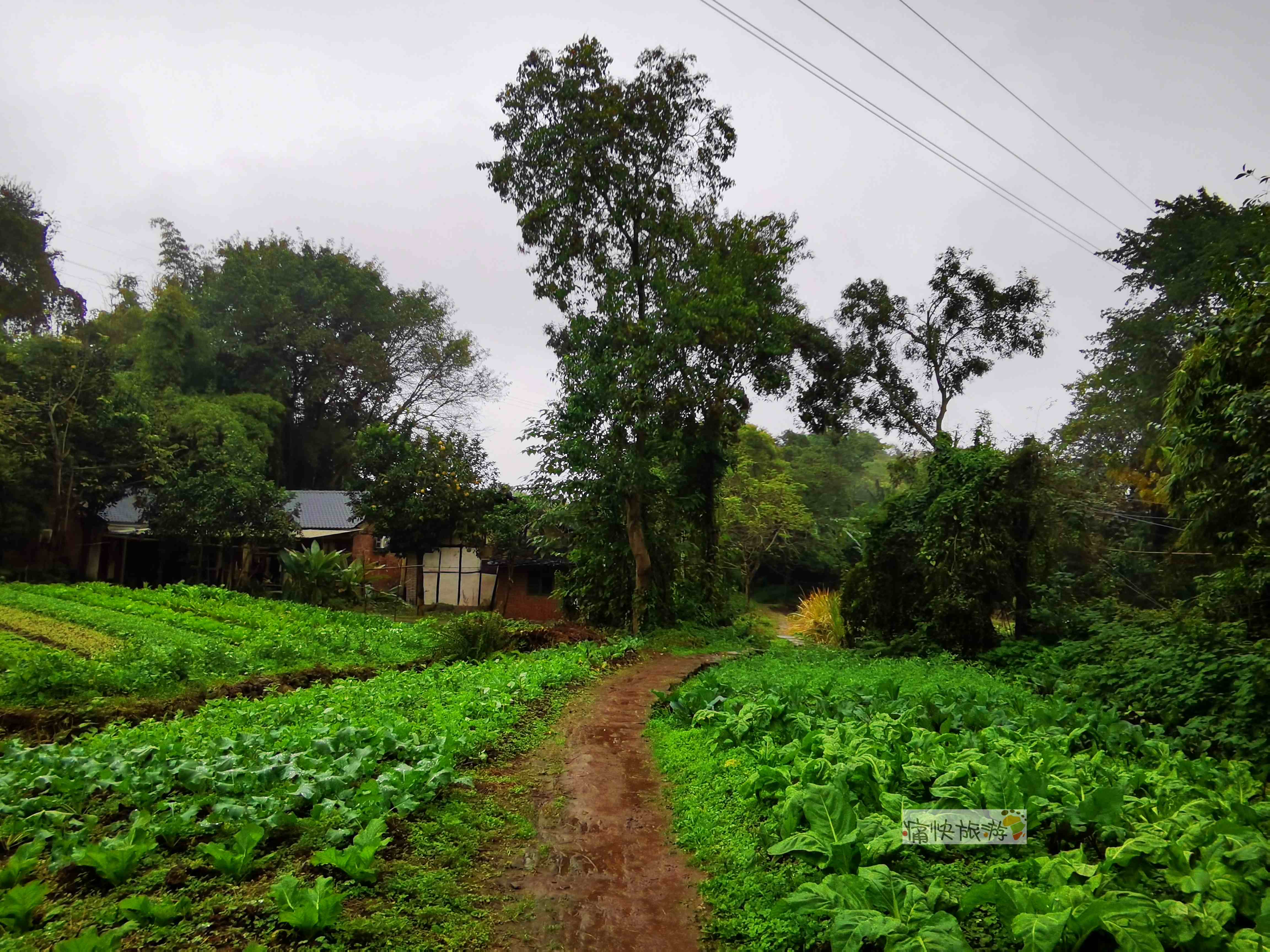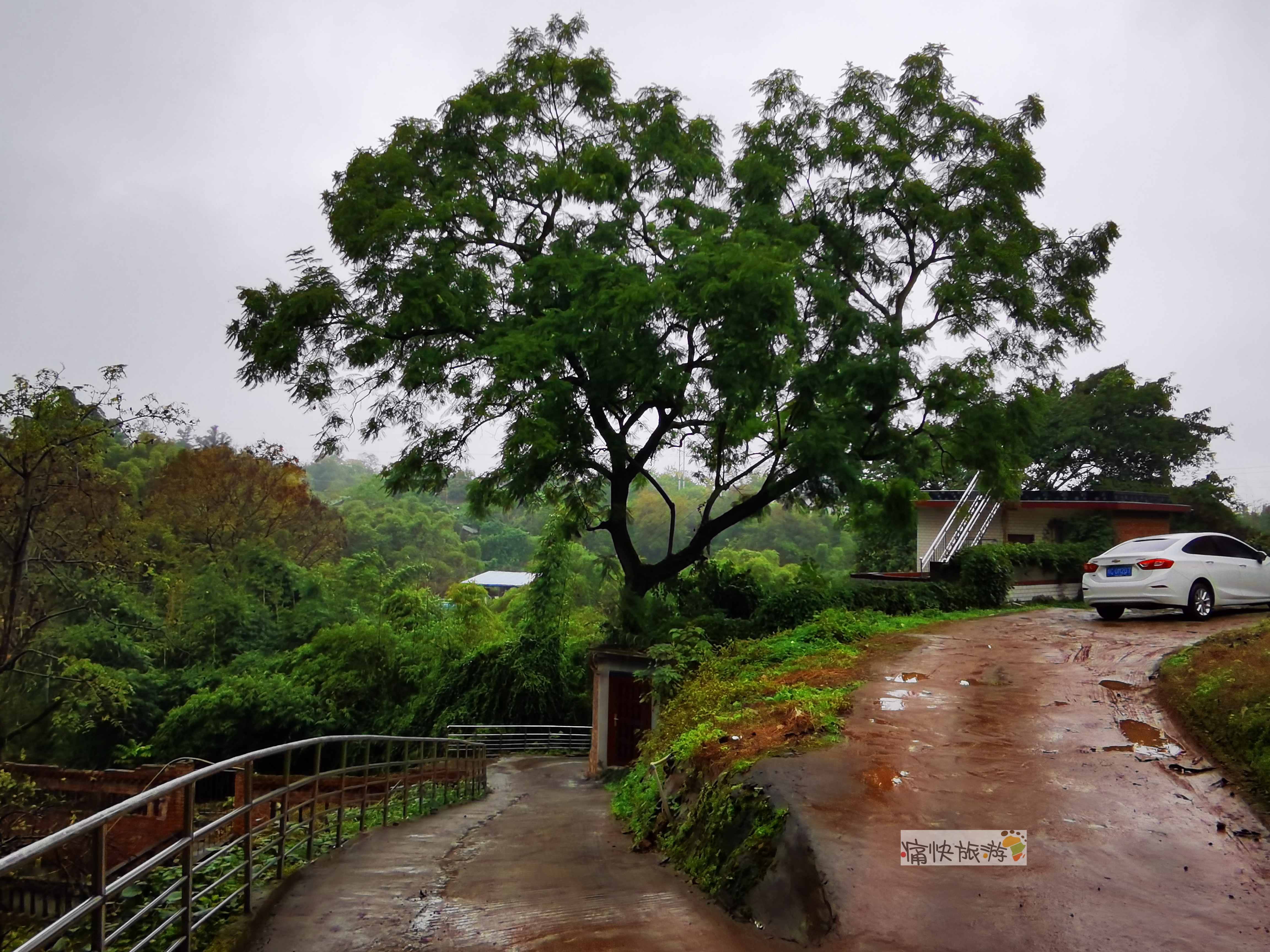 冬雨绵绵,从这棵心形蓝花楹旁的便道进入叶家沟。