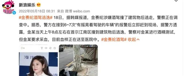 韩媒当时称她逃逸的原因是副驾驶座上有一位醉酒的新人男演员。
