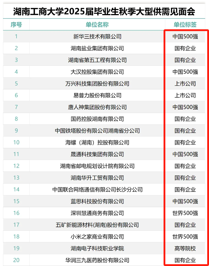 十一月初,湖南工商大学便整了个“大活”,举办了2025届毕业生秋季大型供需见面会,此次见面会吸引了来自北京、上海、广州、深圳等40多个城市的350余家企业参会,企业涵盖制造业、信息传输、软件和信息技术服务业、科学研究和技术服务业、教育、金融业等各个领域,囊括了传统领域与新兴的20多个行业,为学生提供了多元化的行业选择。