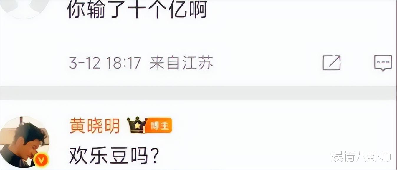 另一位躺枪选手黄晓明,则贡献了全场最佳喜剧效果。有网友在他微博评论区追问:“听说你输了十个亿?”黄晓明直接回怼:“是欢乐豆吗?”瞬间把严肃八卦变成欢乐段子。粉丝也力挺:“晓明哥离婚后专心搞事业,赌场?不如去直播间带货!”