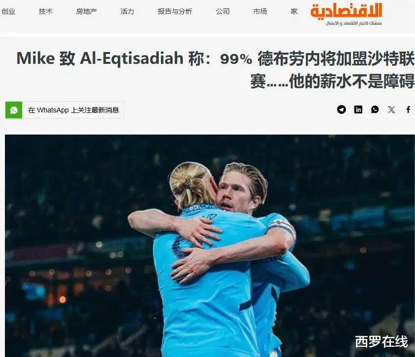 迈克在接受阿拉伯经济报独家采访时表示:“德布劳内在曼城的职业生涯非常辉煌,但很明显他的职业生涯即将结束,不过这位球员不会续约。”