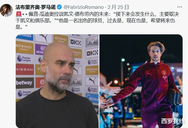 瓜迪奥拉话语已经很明显,今夏合同到期的德布劳内恐将要离开了。