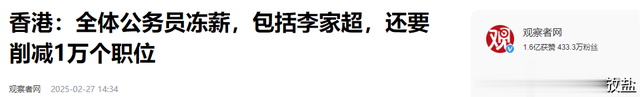 原文登载于观察者网2月27日发布的关于“香港:全体公务员冻薪,包括李家超,还要削减1万个职位”